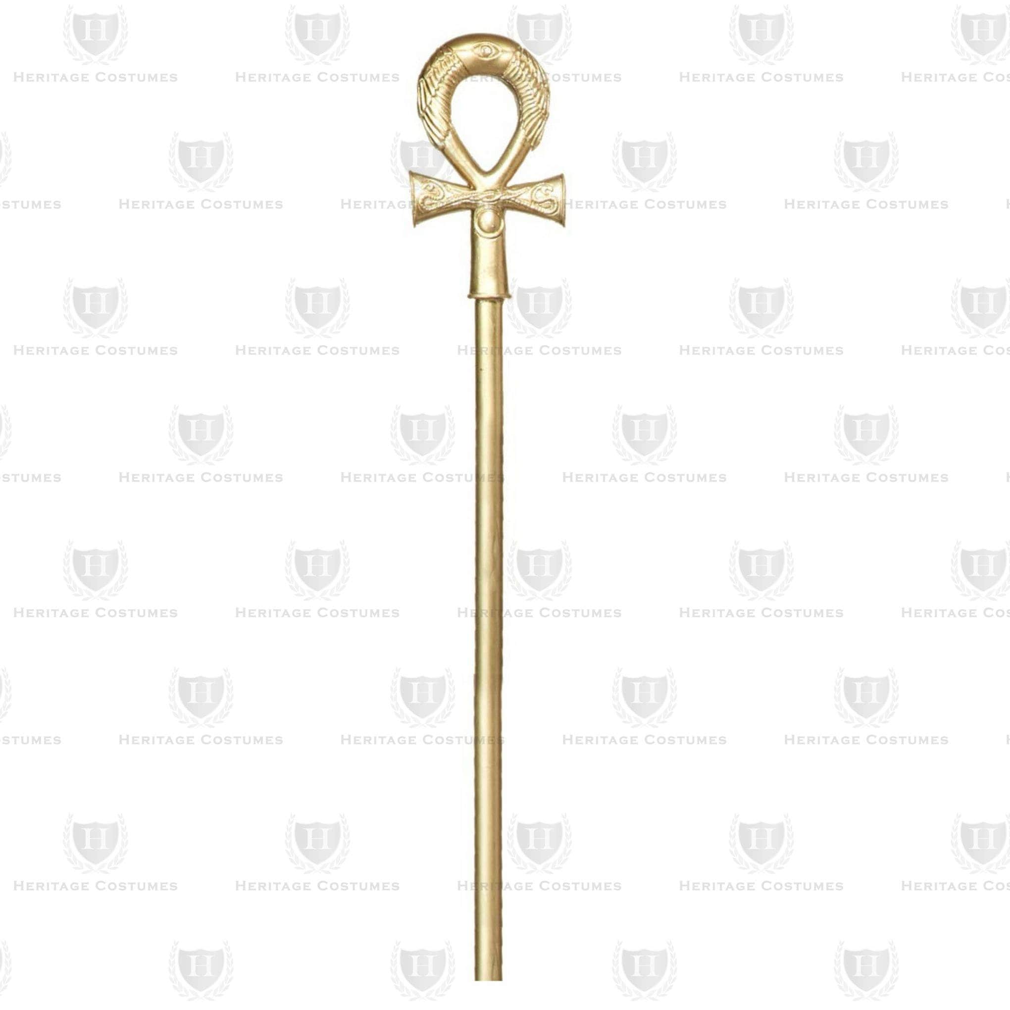 This is a three-piece plastic staff that is assembled to 40" long. Topped with a golden ankh, the symbol of life, itâs a must-have prop for completing your childâs divine ensemble.