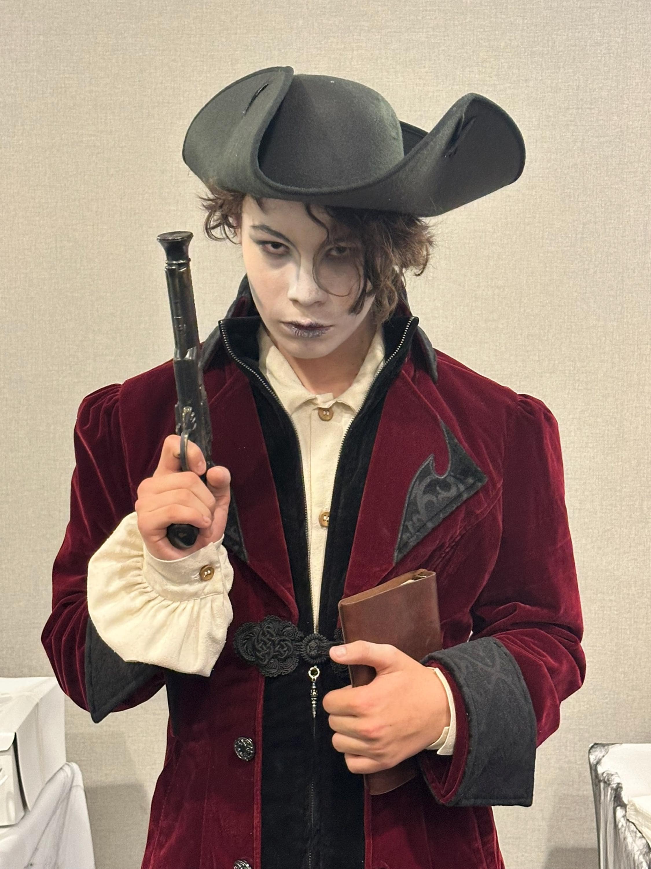 I purchased this black pirate hat to complete my son’s Ghost Pirate Halloween costume. It was perfect and really made the look. We were very pleased. It arrived carefully boxed and delivery was fast. I would happily shop from this seller again.