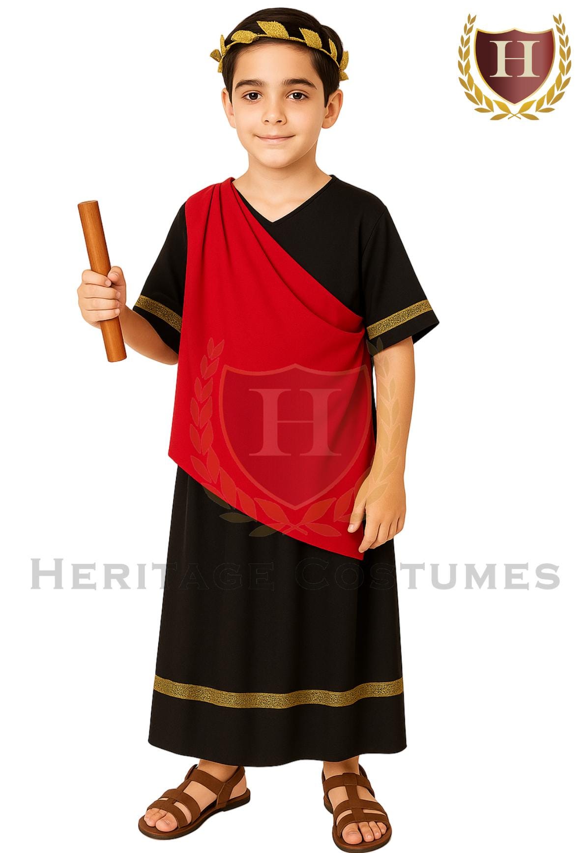 You can select your preferred tunic color from various options, including white, ivory, or black. Each tunic is accompanied by a gold laurel wreath and a  stylish black and gold rope belt, which enhances the fit and adds to the overall appearance of the garment.