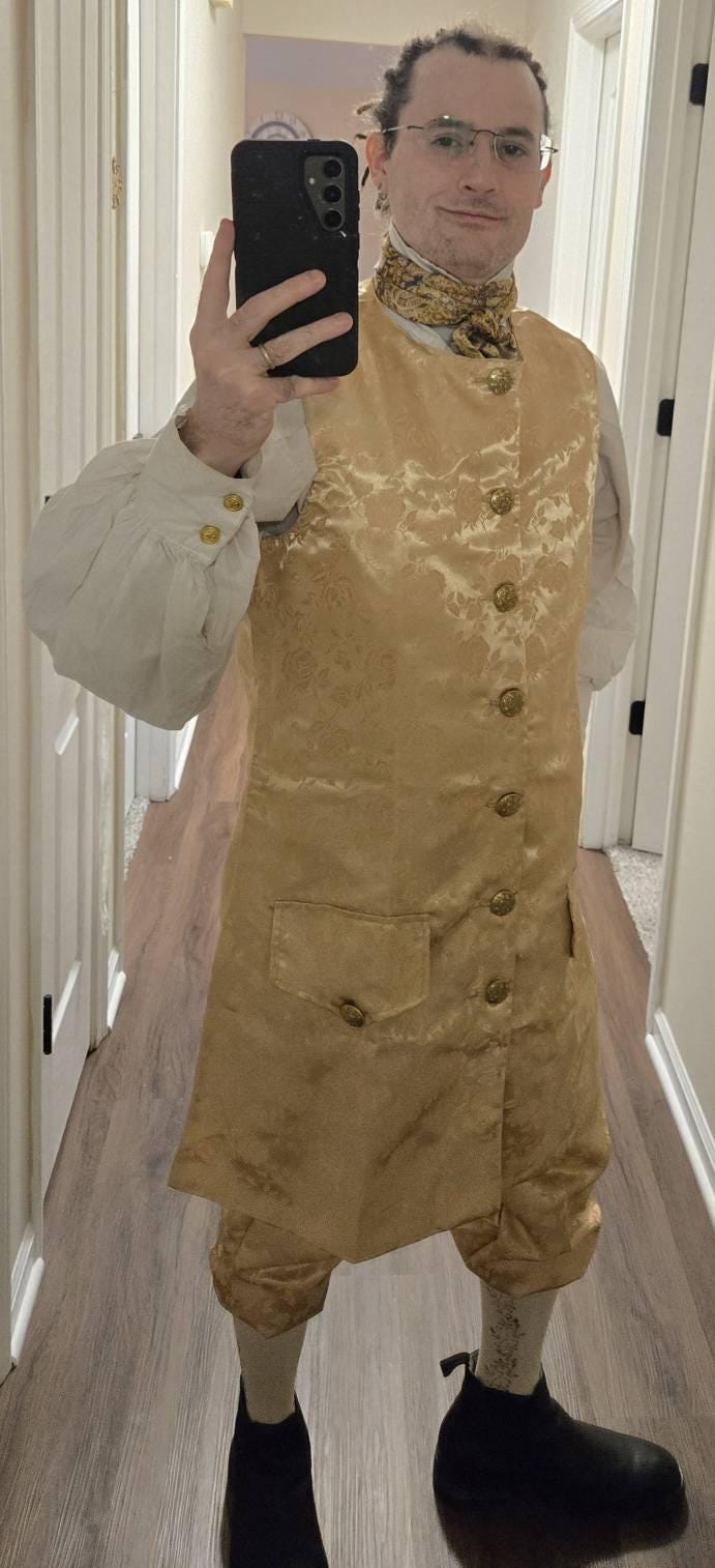 ✔ Premium Satin Polyester Jacquard Fabric – Offers a refined look, suitable for portraying a colonial gentleman or a Revolutionary War hero.