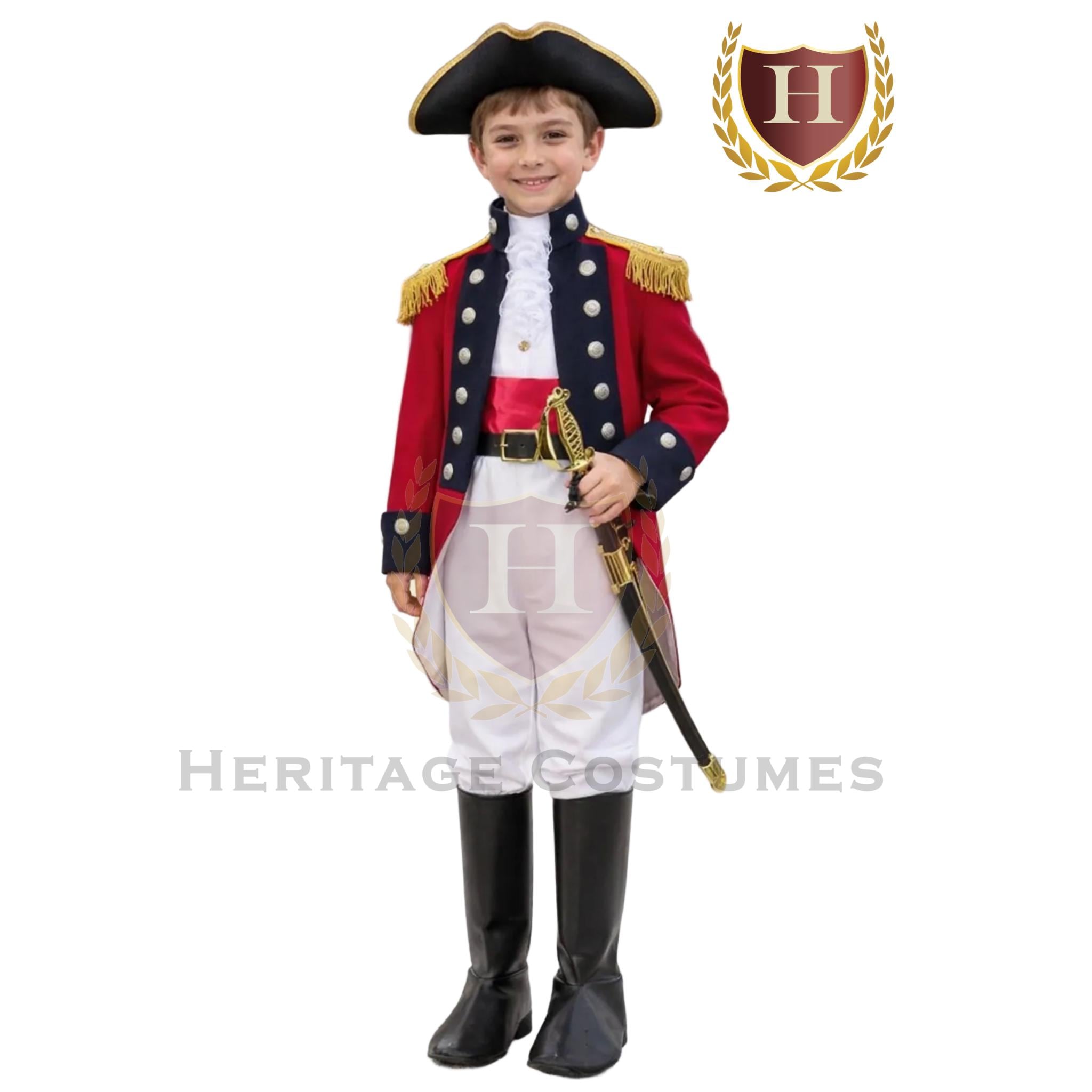 Transform your child into a historian with this classic British Red Coat costume. Ideal for school projects and book reports, this uniform allows your child to bring their lessons to life and showcase their knowledge at historical events. The costume is inspired by General Sir Henry Clinton, a well-known British army officer and politician. It recreates the look of the military uniform worn by British soldiers from the late 17th to 19th century. Its vibrant madder red color perfectly captures the era's spirit and is sure to make a lasting impression.