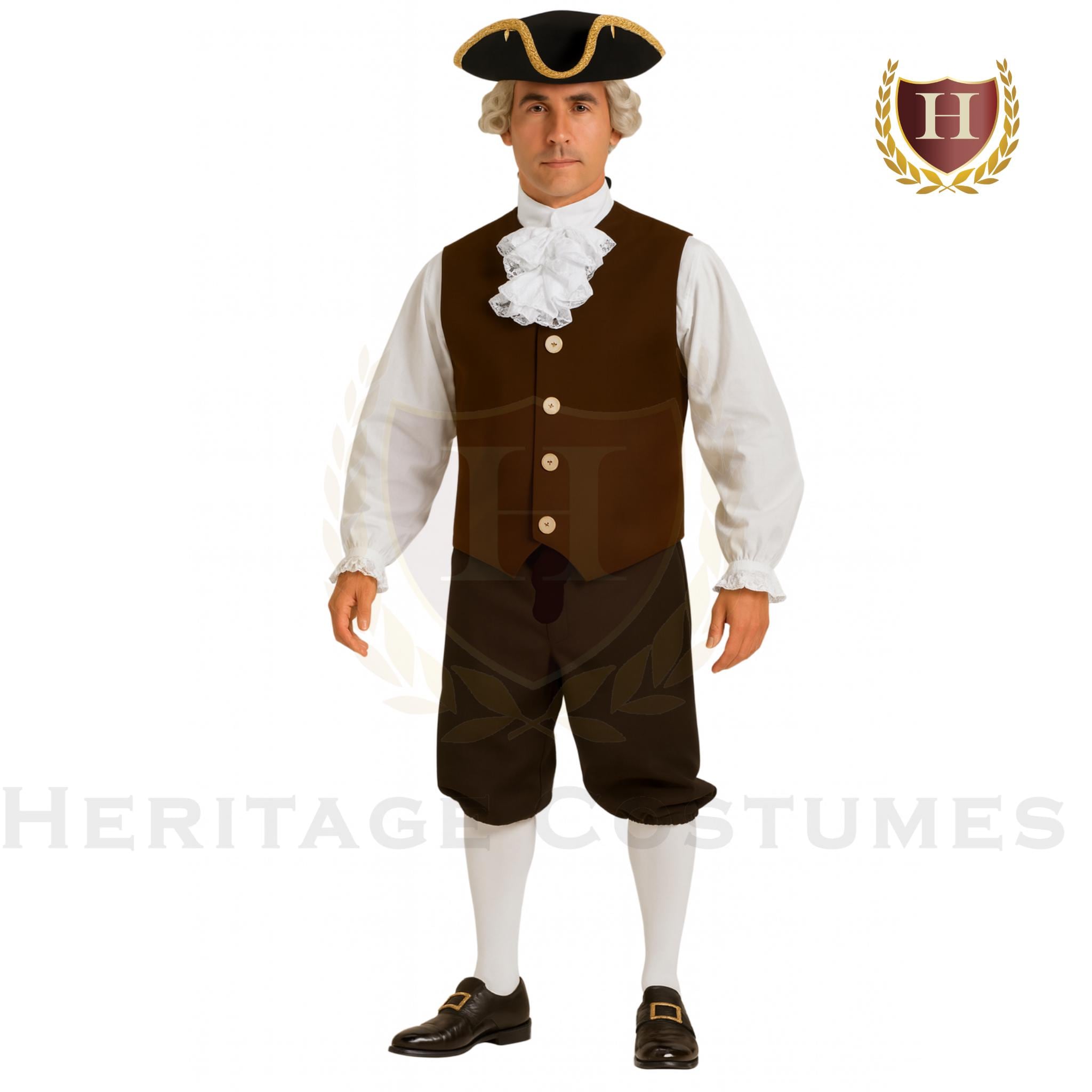 Step into the spirit of early America with our Colonial Men’s Costume, inspired by the refined attire worn by revolutionaries, statesmen, and everyday men of the 18th century. Whether you're portraying George Washington, Thomas Jefferson, or simply looking to embrace a timeless, patriotic look, this ensemble is perfect for reenactments, stage productions, educational presentations, and national celebrations.