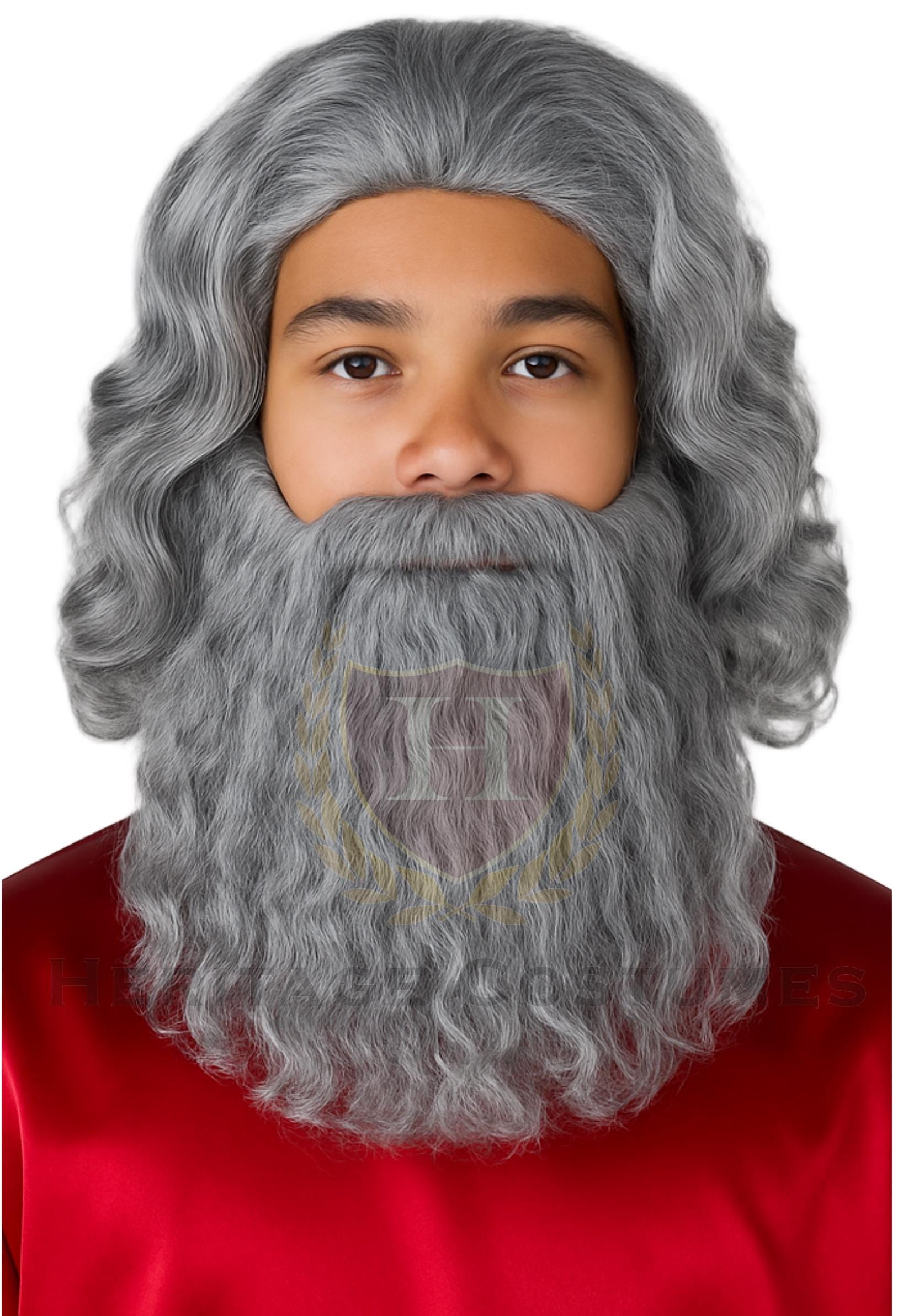 6️⃣ Grey Biblical Beard – Complements the wig and attaches securely for a finished historical portrayal.